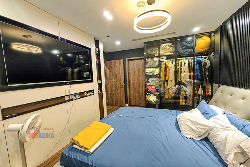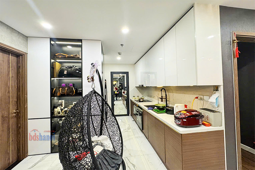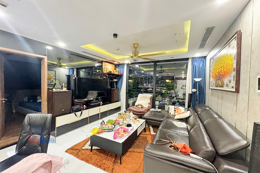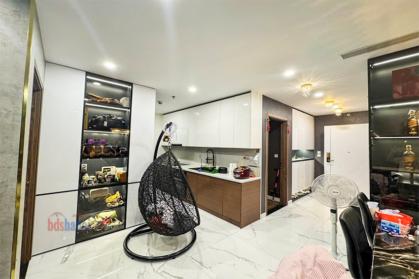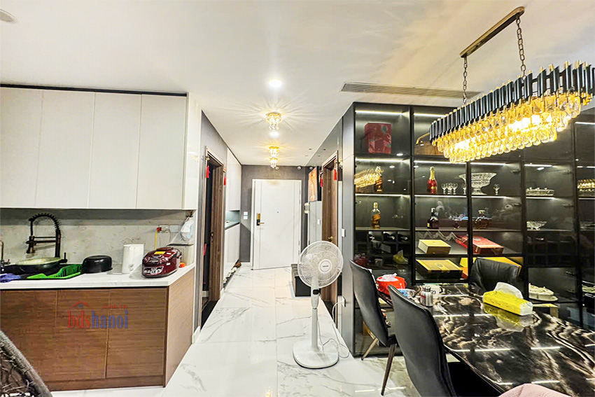 Căn hộ có bố cục hợp lý, tối ưu hóa không gian sử dụng. Thiết kế gồm 1 phòng khách, 1 khu vực bếp, 3 phòng ngủ và 2 phòng vệ sinh. Dựa trên hình ảnh thực tế, căn hộ được chủ nhà đầu tư kỹ lưỡng về nội thất, bao gồm hệ thống tủ tường, tủ bếp, sofa da, bàn ăn mặt đá, piano và các thiết bị điện tử. Tình trạng nội thất được giữ gìn cẩn thận, cho phép chủ sở hữu mới có thể dọn vào ở ngay.