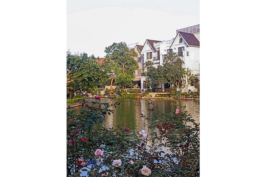 Không gian ngoại thất và cảnh quan: Điểm nhấn của bất động sản là không gian sinh thái độc đáo. Phía trước nhà là công viên cây xanh mang lại sự thoáng đãng. Phía sau là khoảng sân vườn rộng được đầu tư bài bản với hồ cá Koi và khu nuôi chim (aviary), kết hợp cùng tầm nhìn trực diện ra dòng sông uốn lượn, tạo nên một môi trường sống thư thái, tách biệt khỏi sự ồn ào của đô thị.