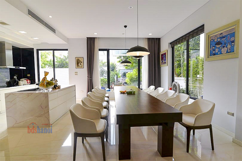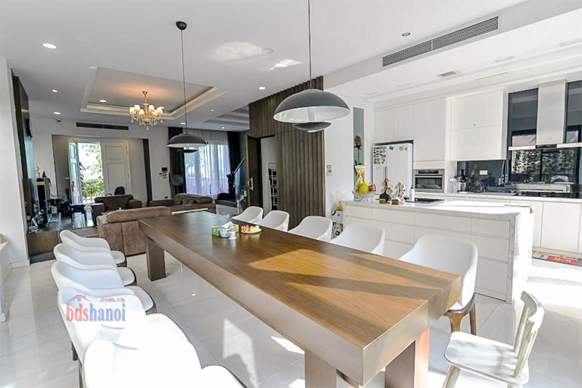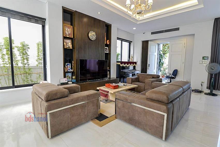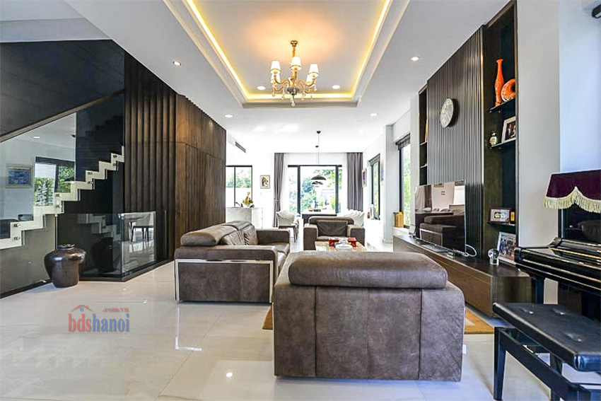 Biệt thự được xây dựng theo kiến trúc Châu Âu, với nội thất đã được hoàn thiện chỉn chu, giá trị cao. Bố cục các tầng được phân chia hợp lý để tối ưu hóa công năng sử dụng cho gia đình đa thế hệ.