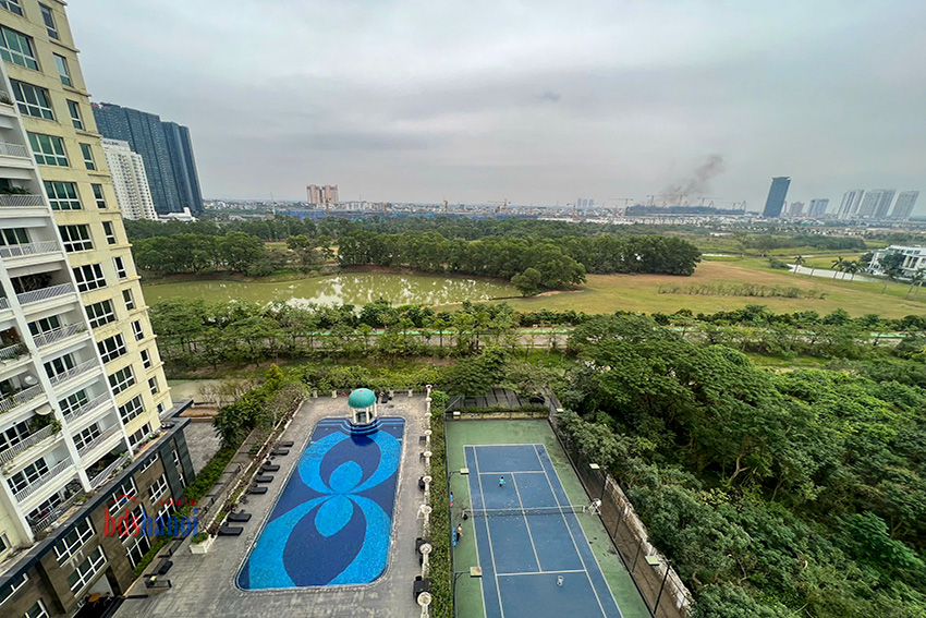 Căn hộ có diện tích 182, toàn bộ cửa sổ view san golf và bể bơi của tòa nhà