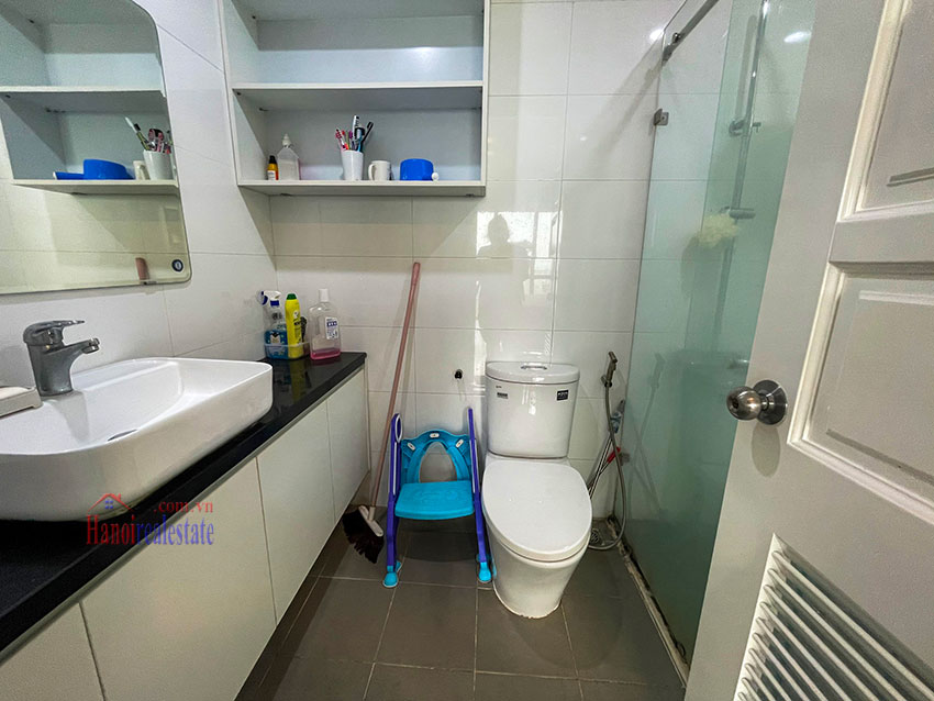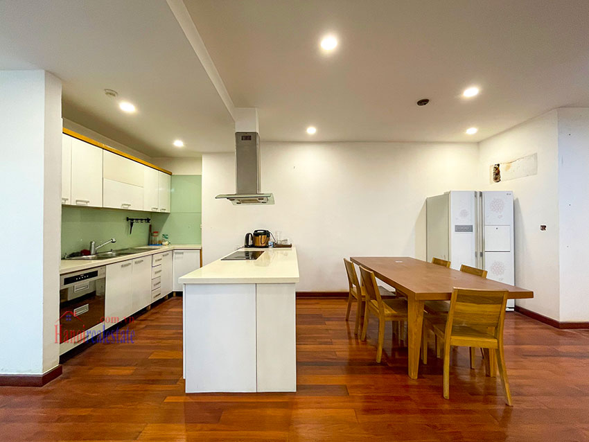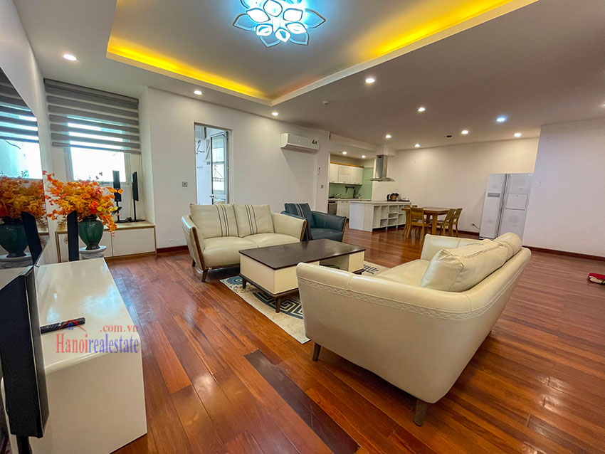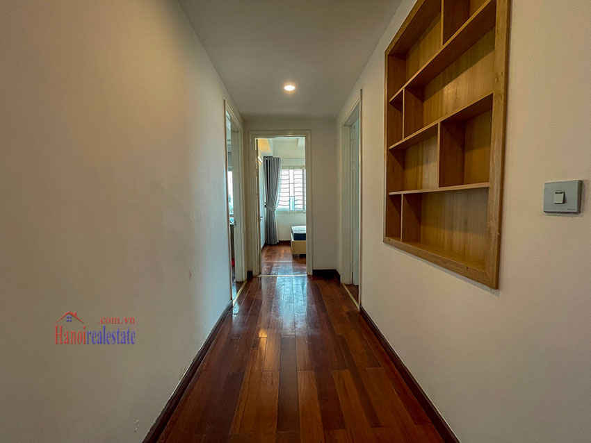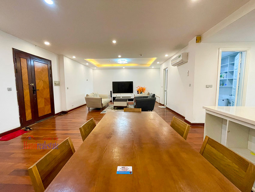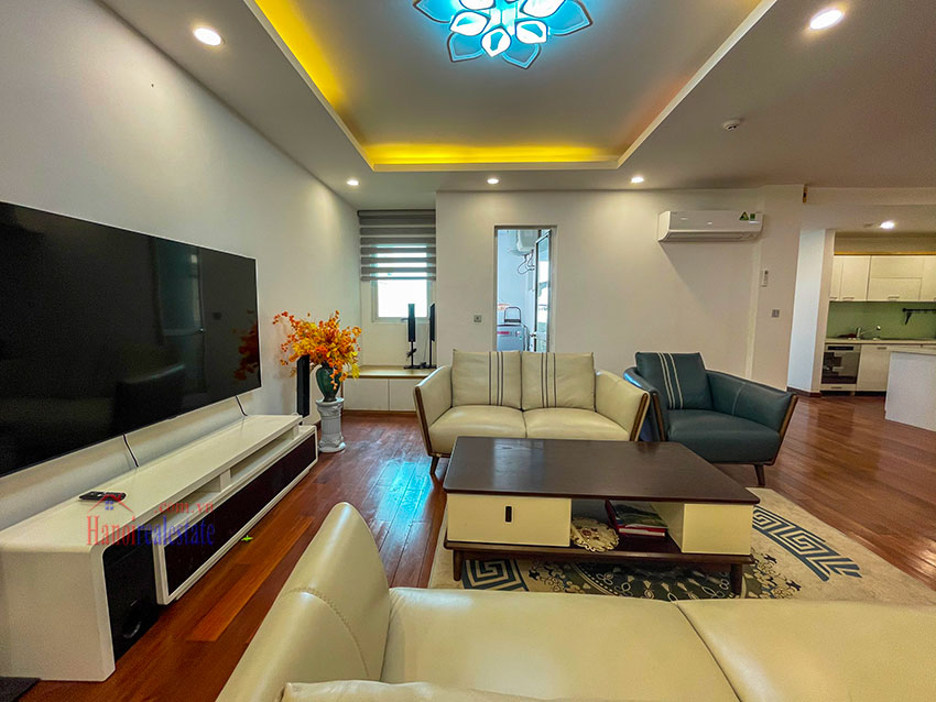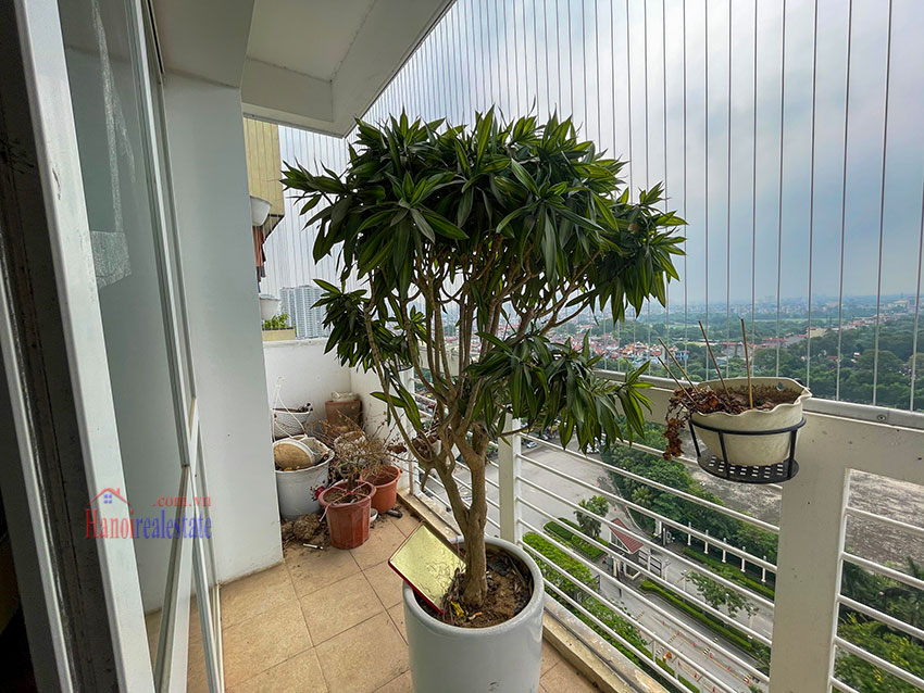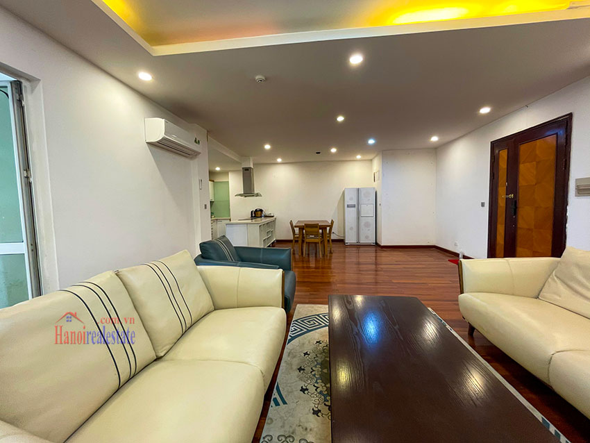 Chính chủ cần bán căn hộ 123m2, tầng cao, đã sửa đẹp với thiết kế bếp mở, gồm 3PN và 2WC. Căn hộ này có ban công trong phòng ngủ chính, view nhìn sang dự án Bệnh viện và khu T Ciputra. Căn hộ nằm trên tầng cao. Chủ nhà đã sửa lại và đẩy các phòng ngủ sang khu vực riêng biệt, cung cấp nhiều ánh sáng tự nhiên cho các phòng. Phòng khách và phòng ăn có cửa thông gia lô gia giặt (do đã sửa lại), khiến cho khu vực sinh hoạt chung rất thoáng và nhiều gió.
