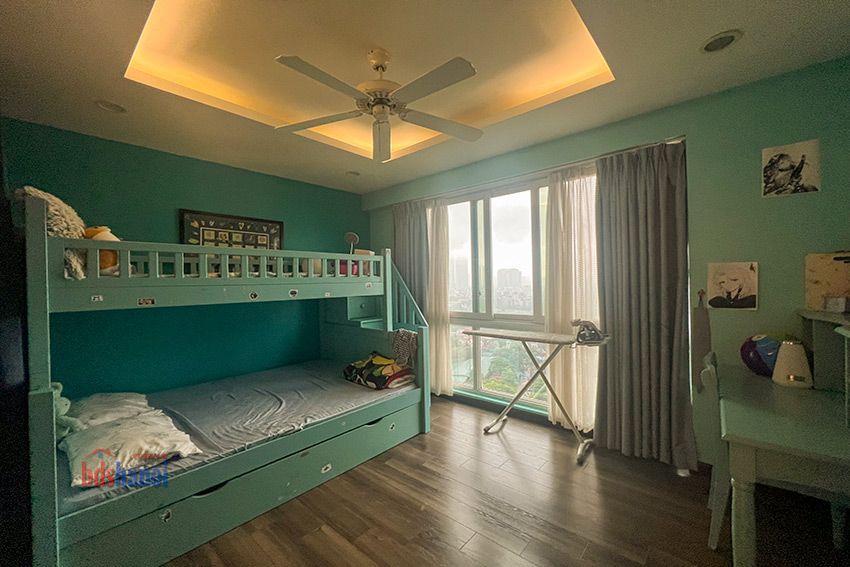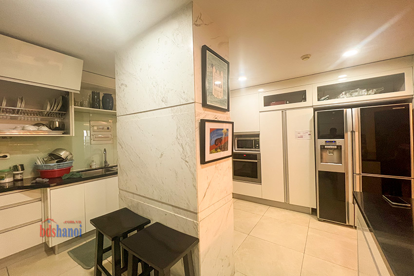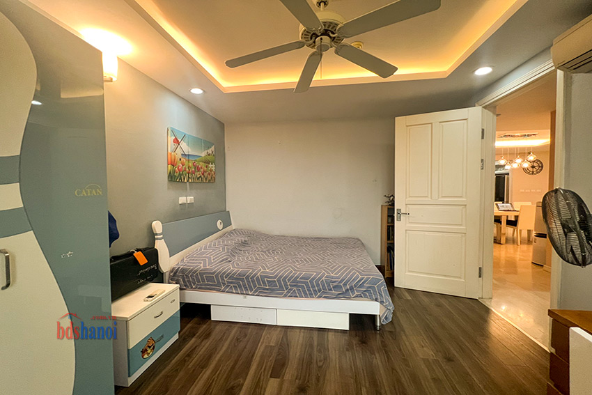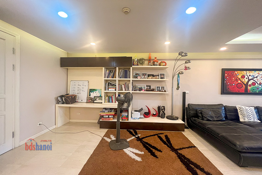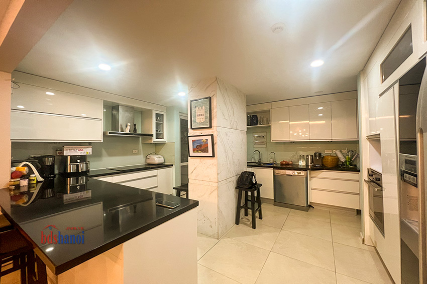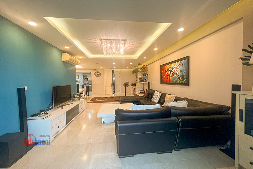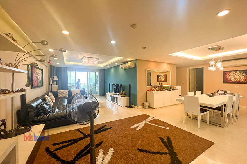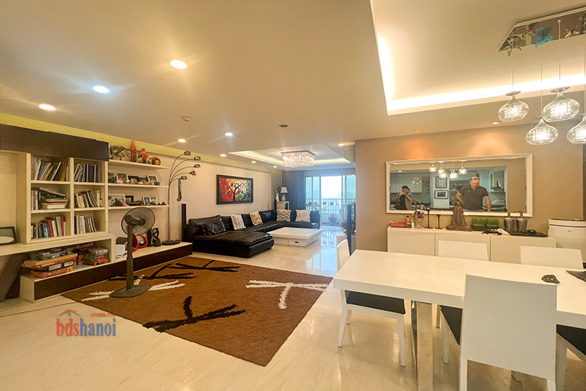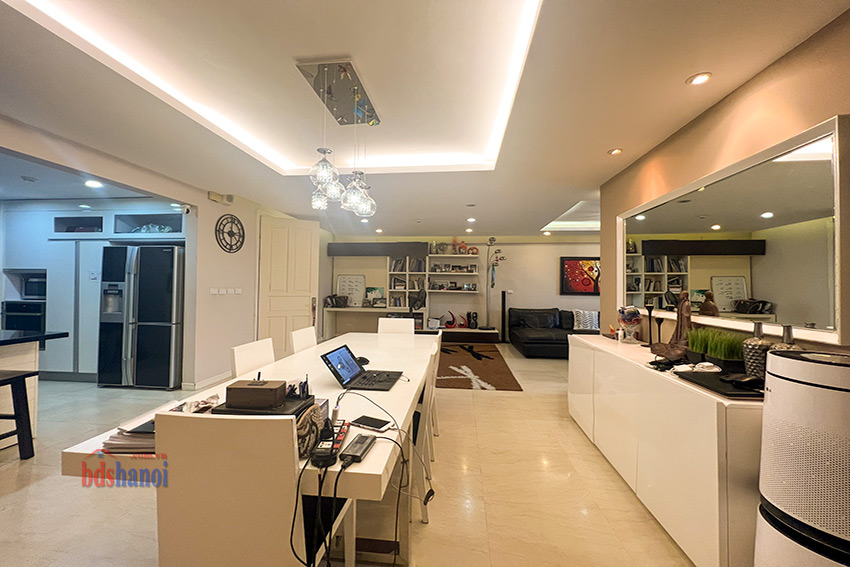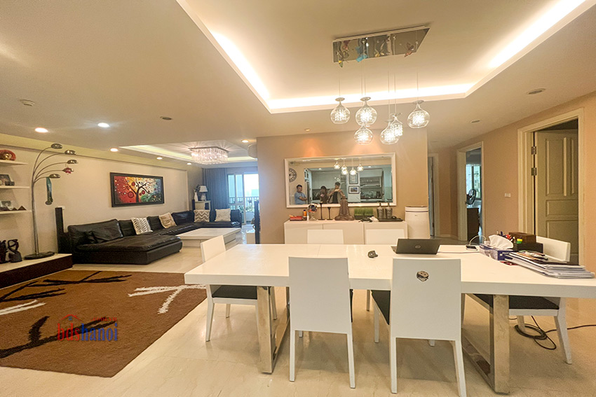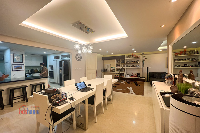 căn hộ đã đuọc cải tạo lại khu bếp rộng hơn so với nguyên bản, vệ sinh cũng đã đuiocj nâng cấp và chuyển sang vị trí hợp lý hơn, căn hộ có 4 phòng ngủ 3 phòng vệ sinh và một phòng kho ( phòng kho có thế làm thành một phòng ngủ) đồ nội thất đuọc thiết kế hợp lý với không gian căn hộ, phòng khách và phòng ăn rộng và thoáng cho các buổi liên hoan tụ họp gia đình bạn bè thoải mái hơn, căn hộ tầng cao yên tĩnh có thể cho thuê ngay nếu không có nhu cầu ở giá tham khảo tại thị trường là 50 tr một tháng.