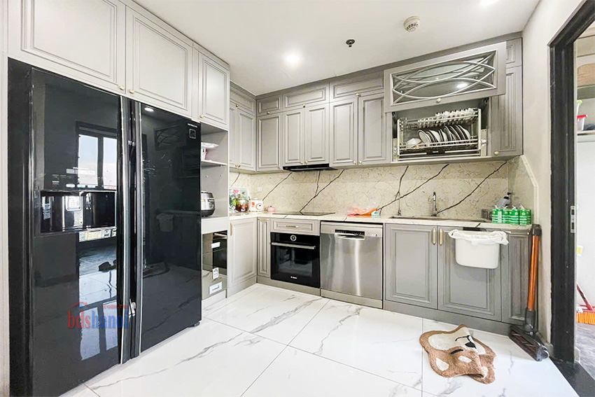 Căn hộ được bàn giao với đầy đủ nội thất cao cấp theo phong cách hiện đại, đồng bộ. Các hạng mục bao gồm sofa, hệ thống tủ giường, bàn ăn đá, tủ bếp, các thiết bị điện tử và gia dụng như bếp từ, lò nướng, máy rửa bát, máy giặt, máy sấy và hệ thống điều hòa âm trần.
