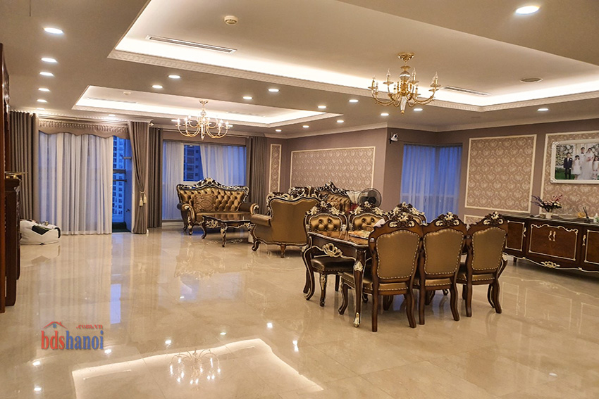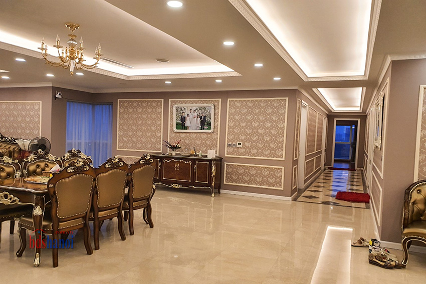 Căn hộ đã được gia chủ hoàn thiện vô cùng tỉ mỉ theo lối kiến trúc Tân Cổ Điển, hoàng gia vô cùng sang trọng và đẳng cấp