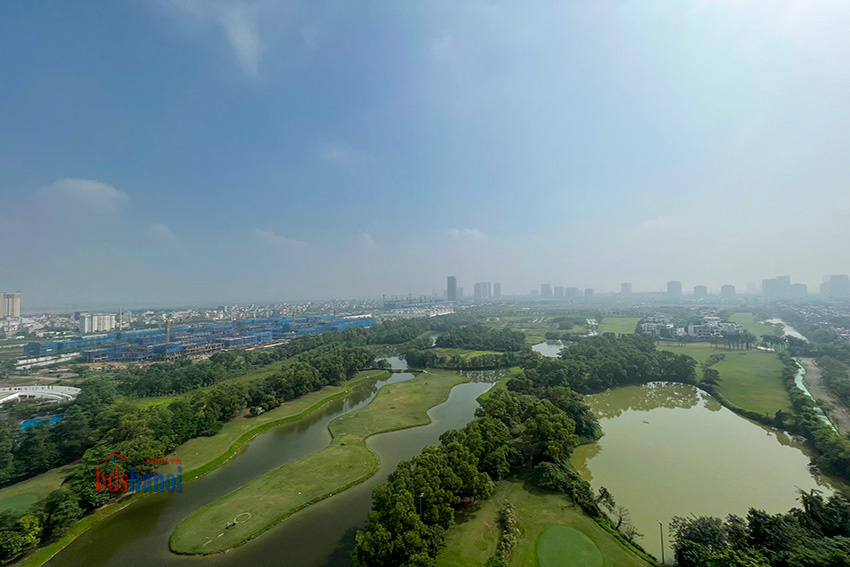 Toàn bộ các phòng view Sân Golf và sông Hồng, Phía xa nhìn trực diện cầu Nhật Tân và Hồ Tây