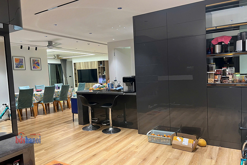 Nột thất được trang bị bao gồm điều hòa âm trần thương hiệu Daikin, hệ thống thiết bị bếp trang bị của Bosch
