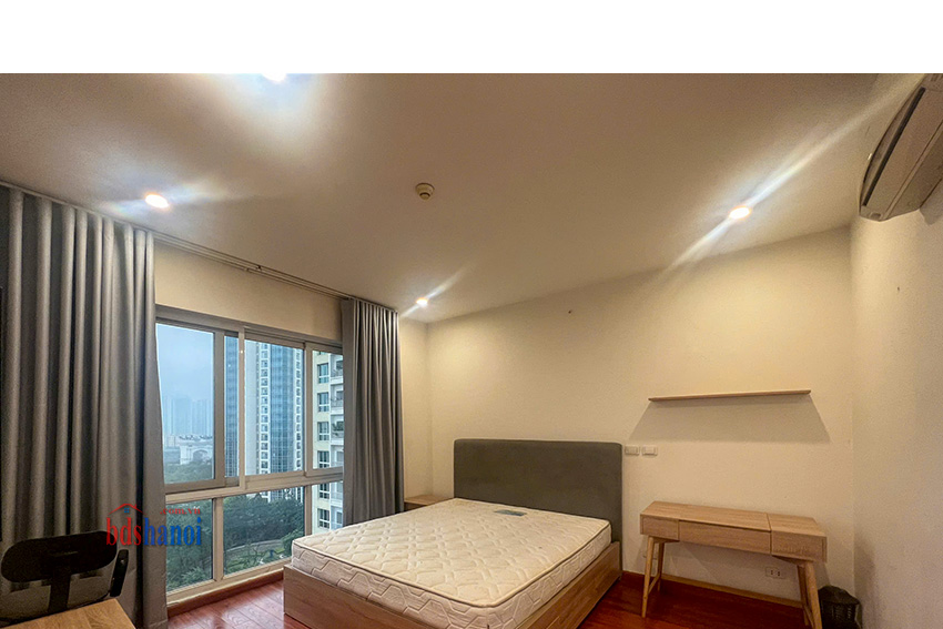 Diện tích căn hộ 145m2 thiết kế 3 phòng ngủ, 2vs, pk, bếp đã sửa sang đẹp, tầng trung, ban công Đông nam, view sân golf, nội khu biệt thự.