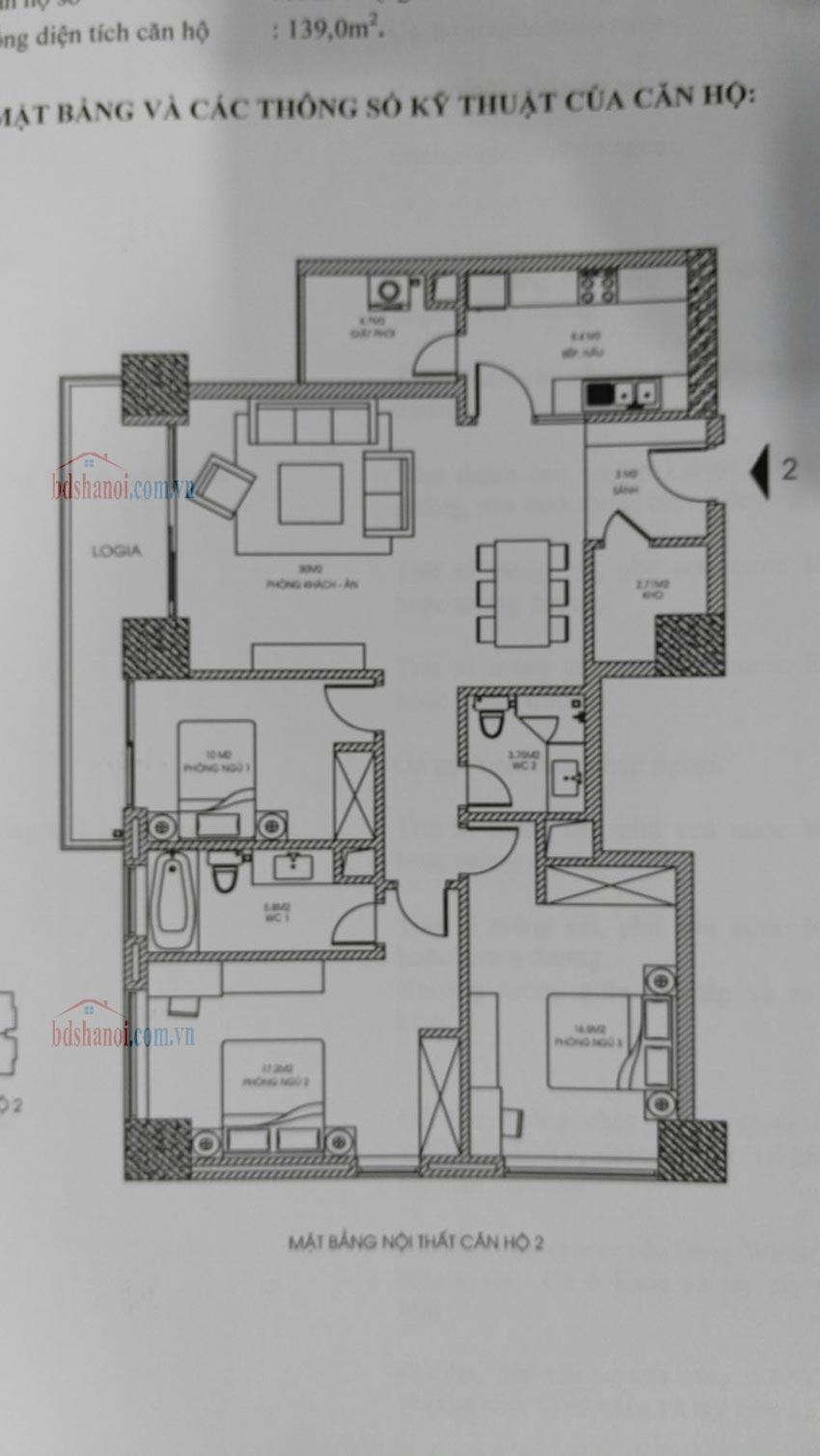 - Căn góc số 2 diện tích 139m2, gồm 3 phòng ngủ, 2 vệ sinh logia 2 ban công hướng Đông Nam - Đông Bắc, hướng cửa chính Tây.