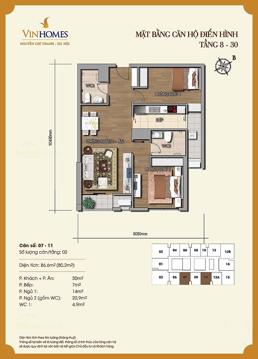 Bán căn hộ thiết kế đẹp chung cư cao cấp Vinhomes Nguyễn Chí Thanh. Căn hộ có diện tích sử dụng 86,6m2, phòng khách và bếp trên cùng một sàn rộng bố trí hợp lý, 2 phòng ngủ và 2 phòng vệ sinh riêng biệt, logia và ban công rộng hướng TB – ĐN.
