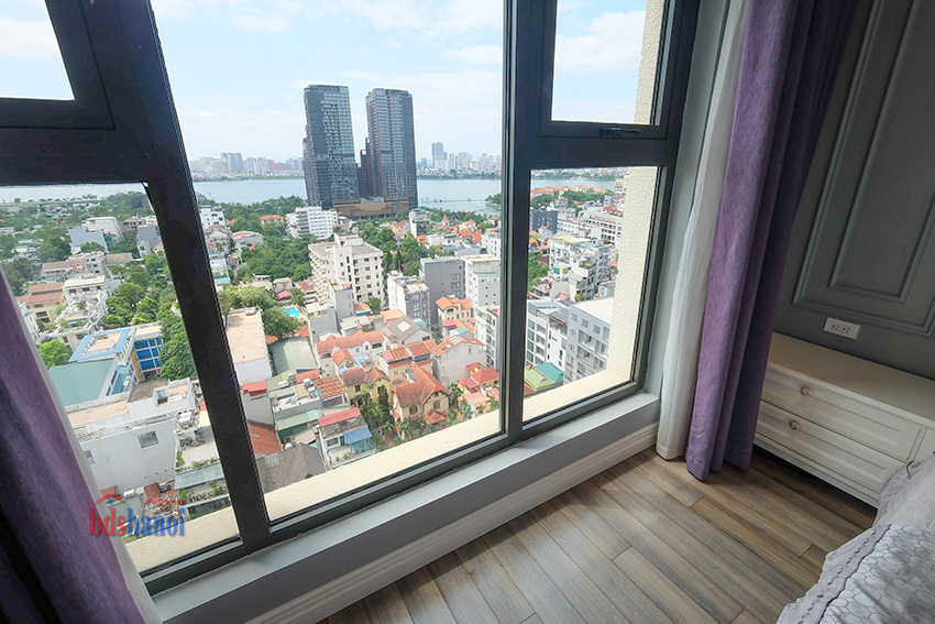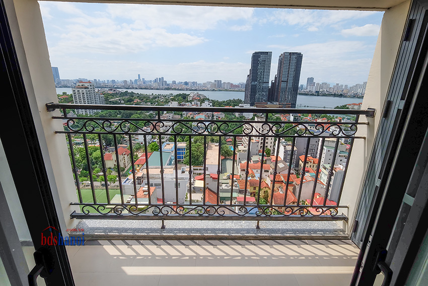 Căn hộ đã được trang bị đầy đủ toàn bộ nội thất hiện đại, Tầng cao, ban công rộng, tất cả các phòng đều có rất nhiều ánh sáng tự nhiên, View nhìn thẳng ra hồ tây siêu đẹp.