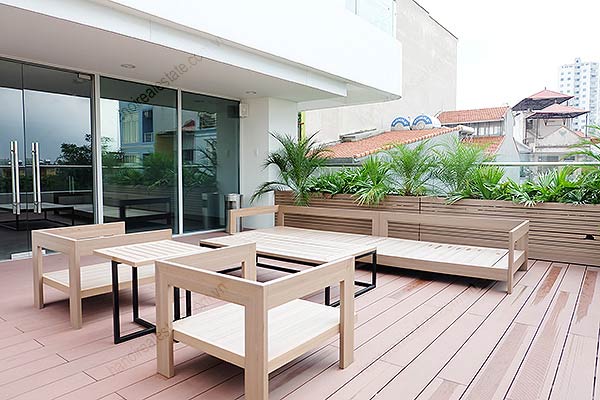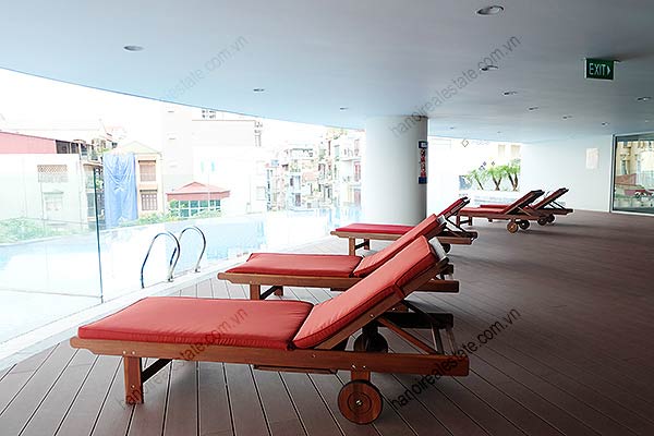 Căn hộ được trang bị sẵn hệ thống tủ bếp cao cấp, điều hòa trung tâm, điều hòa 2 chiều trong các phòng ngủ, bếp, máy hút mùi, lò nướng, máy giặt. Tòa nhà có các tiện ích cao cấp như hầm để xe, bảo vệ 24hr, lễ tân, ban quản lý, bể bơi ngoài trời, phòng tập