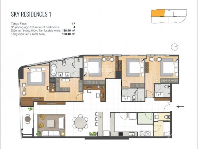 - Căn tầng cao, duy nhất chỉ 2 căn trên tầng 17 nên rất riêng tư yên tĩnh, 2 thang máy không lo chờ đợi.