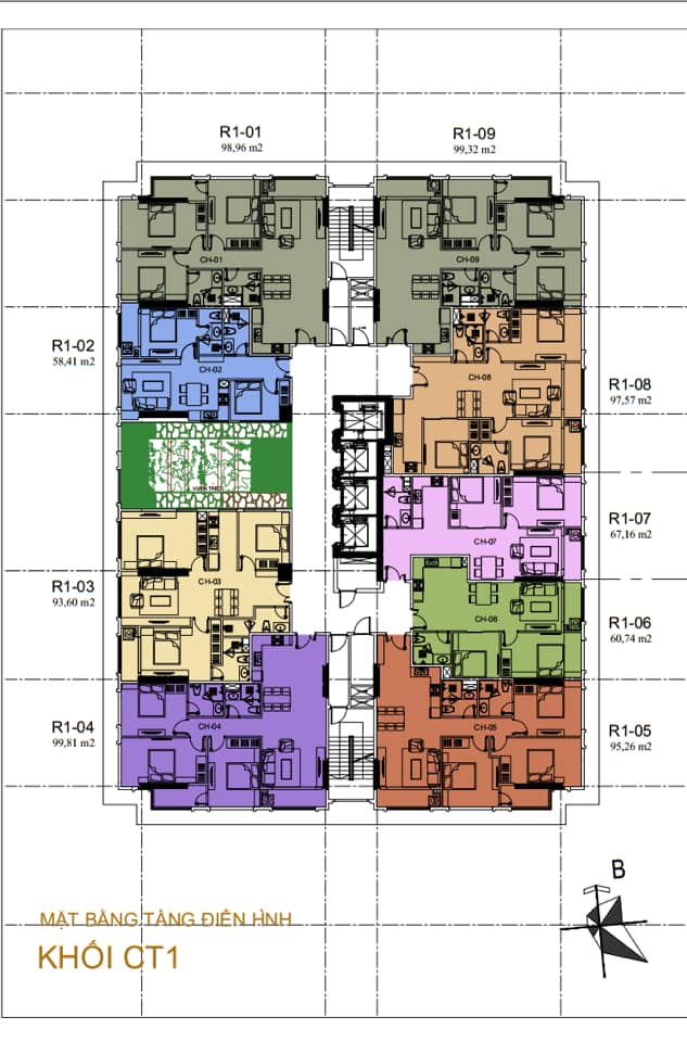 Sunshine Riverside toà R1 căn số 06 diện tích 60,74m, gồm 1 phòng khách, 2 phòng ngủ và 2 nhà tắm