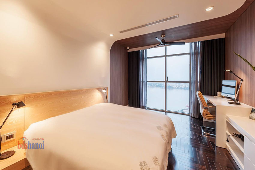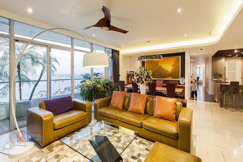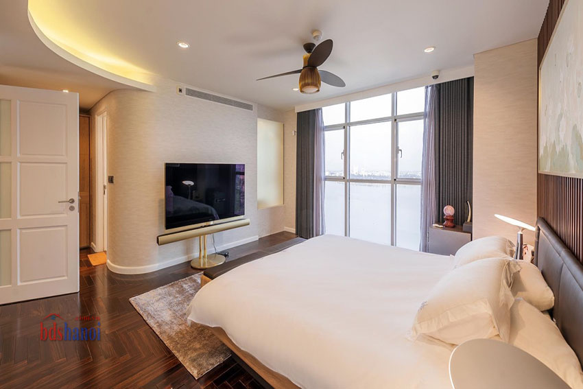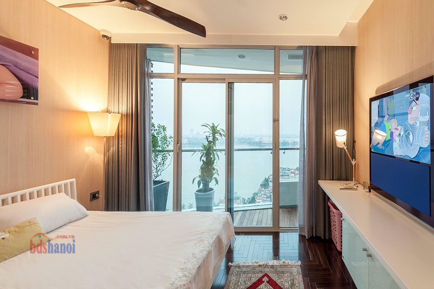 Căn hộ lớn có diện tích 245m, view toàn bộ Hồ Tây, tầng cao, các phòng đếu có cưa sổ lớn, đón ánh sáng trực tiếp.