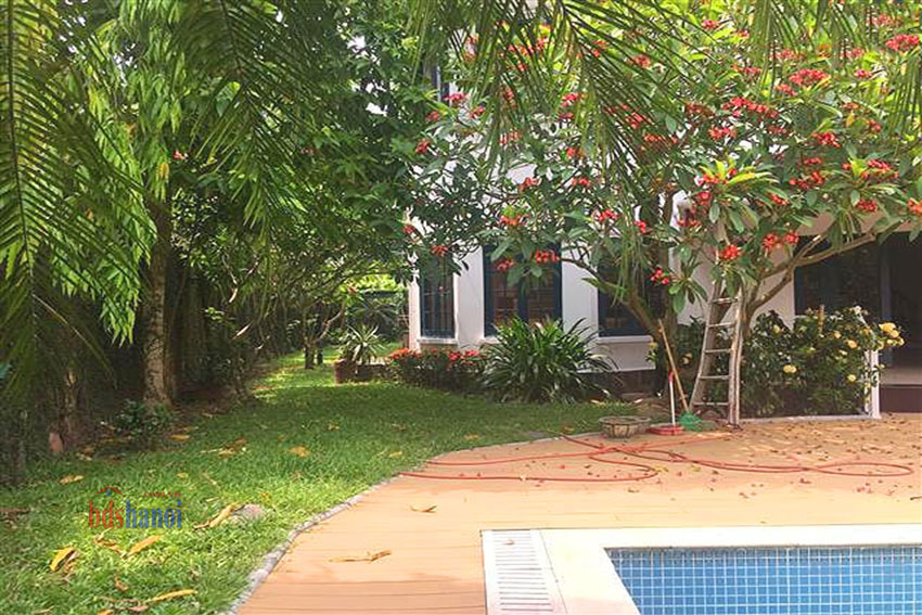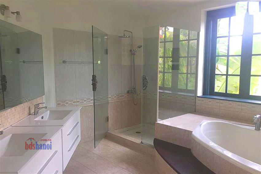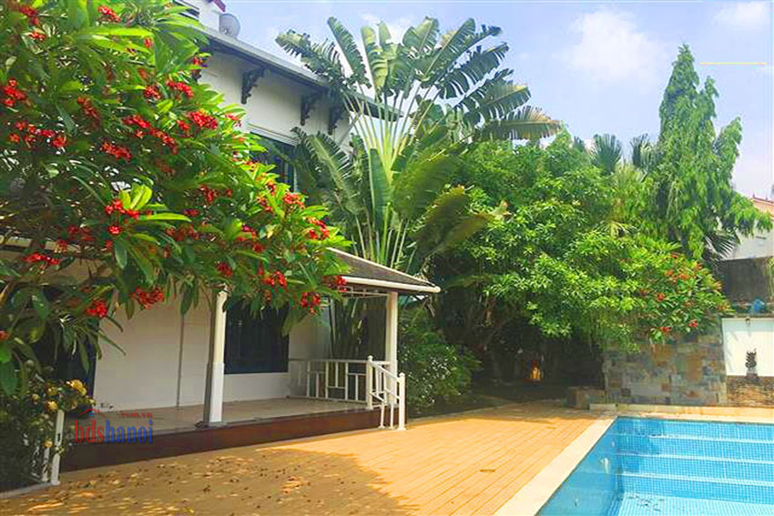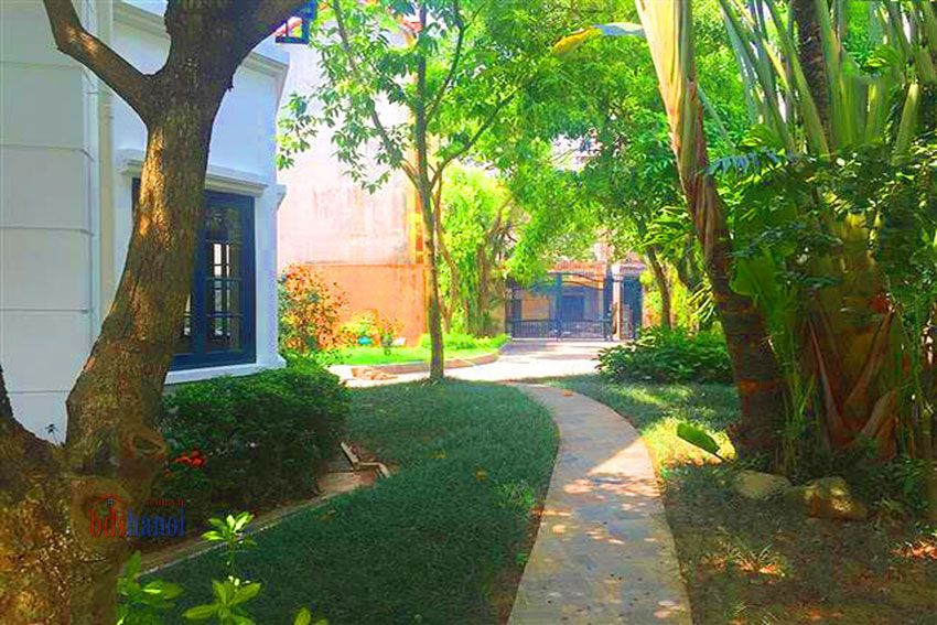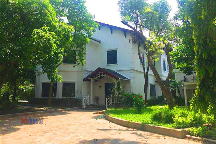Căn Biệt thự có tổng diện tích đất là 1.238,1 m2 là đất ở lâu dài tại đô thị đã được cấp giấy chứng nhận bởi sở tài nguyên và môi trường thành phố Hà Nội, Hiện trạng Đã xây dựng sẵn 2 khối biệt thự 2 tầng kiểu Pháp với diện tích lần lượt là 250 m2 và 50 m2 được thiết kế bởi kiến trúc sư người Pháp, điện tích phòng khách rất rộng có thể tiếp đón khoảng 2-30 người dự tiệc. Trong khuôn viên đã có bể bơi rộng, Sân vườn bao quanh và được trồng nhiều cây xanh. Căn biệt thự phù hợp với mọi gia đình sinh sống và nghỉ dưỡng, thường xuyên có nhu cầu tiếp khách VIP