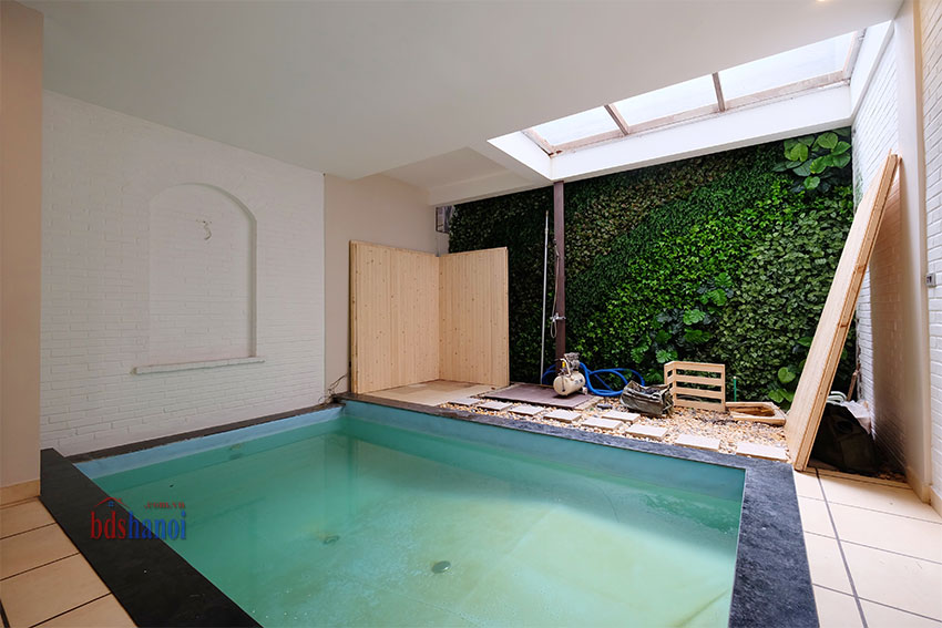 - DT sổ đỏ 100m2, diện tích thật gần 120m, MT gần 6m, đất vuông vắn. Thiết kế hiện đại phong cách Châu Âu thoáng đãng, có sân vườn nhỏ phía trước và bể bơi trong nhà