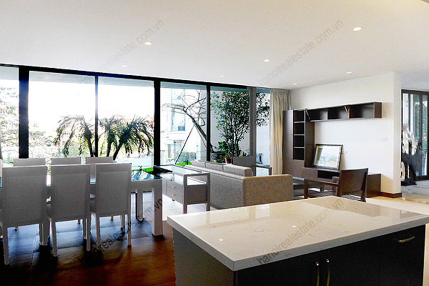 - Mối tầng được thiết kế thành 1 căn hộ 2 phòng ngủ view hồ đầy đủ nội thất hiện đại, có ban công cực rộng nhìn như góc vườn nhỏ trên cao, rất thoáng đãng và cực kì yên tĩnh