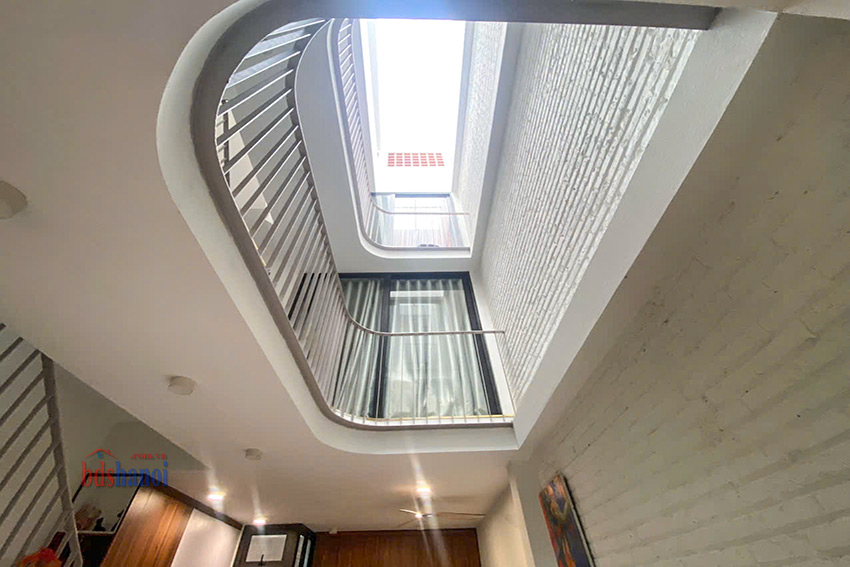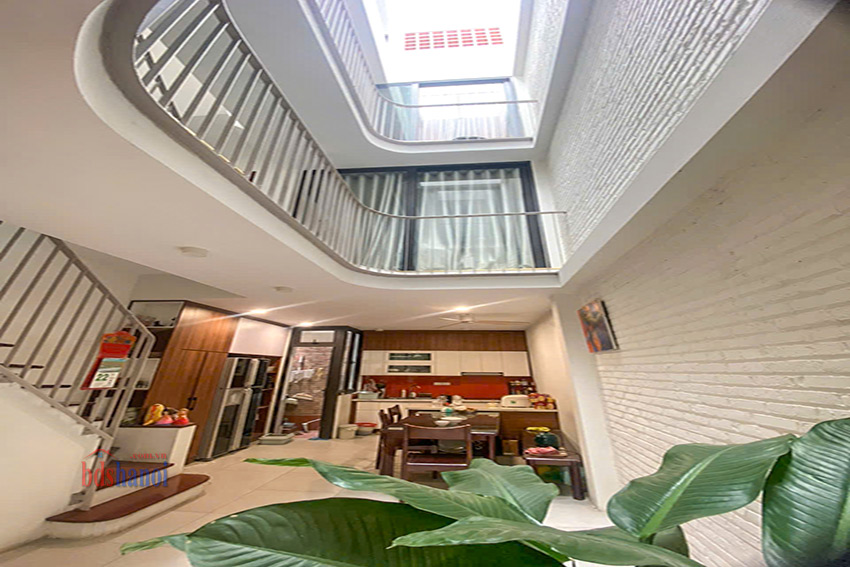 Kiến trúc và bố trí công năng: Ngôi nhà được thiết kế theo phong cách hiện đại, ưu tiên tối ưu diện tích và độ thông thoáng nhờ hệ thống giếng trời và ô thoáng phân bổ hợp lý: