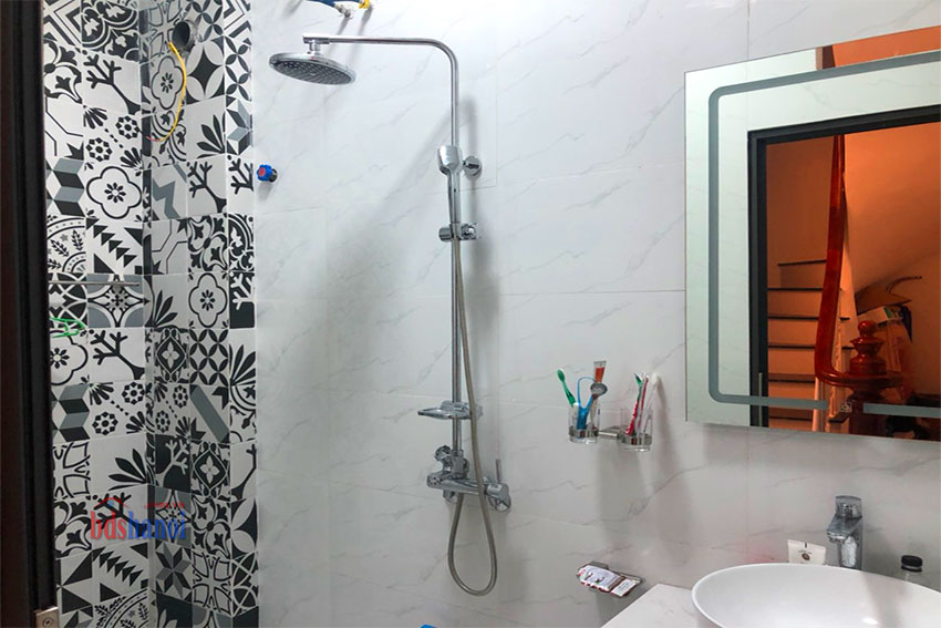 - Tầng 1 bao gồm Gara oto, nhà vệ sinh, tầng 2 có hệ thống bếp được thiết kế tỉ mỉ theo phong cách hiện đại và phòng khách khá rộng. tầng 3 + 4 mỗi tầng 2 phòng ngủ và 2 phòng tắm, tầng 5 phòng thờ và sân thượng.