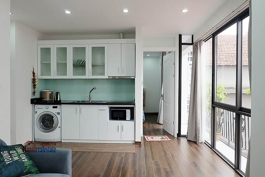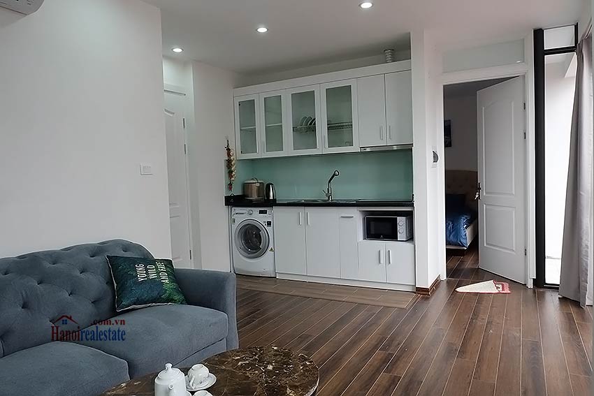 - Thiết kế mỗi tầng là 3 căn hộ 1 phòng ngủ , tổng 19 căn hộ được lắp đặt toàn bộ đồ nội thất tiện nghi hiện đại không thiếu thứ gì như giường, tủ, ghế sofa, điều hòa, TV, khu vực bếp, thiết bị và đồ dùng nhà bếp, bàn ăn, máy giặt.