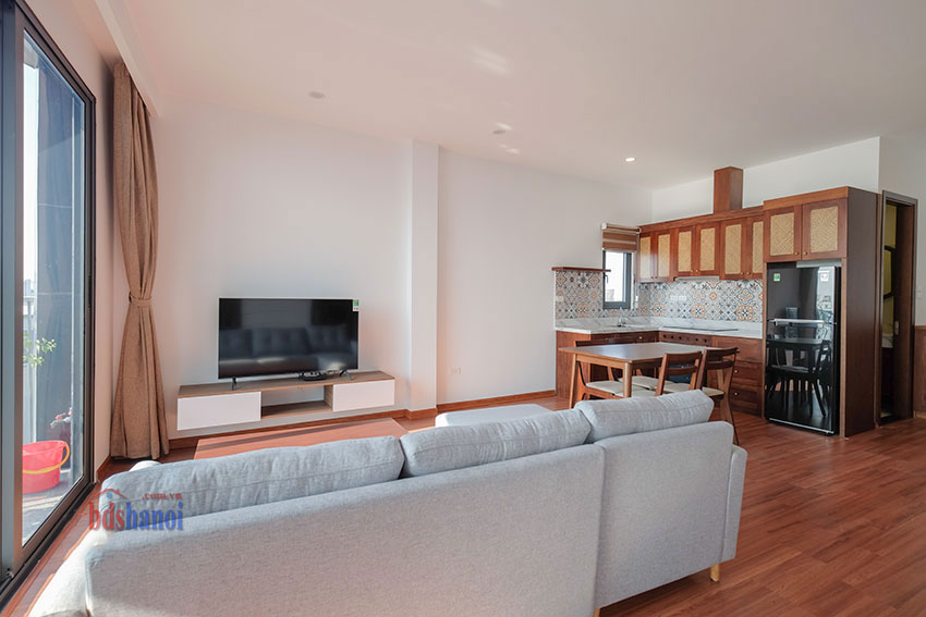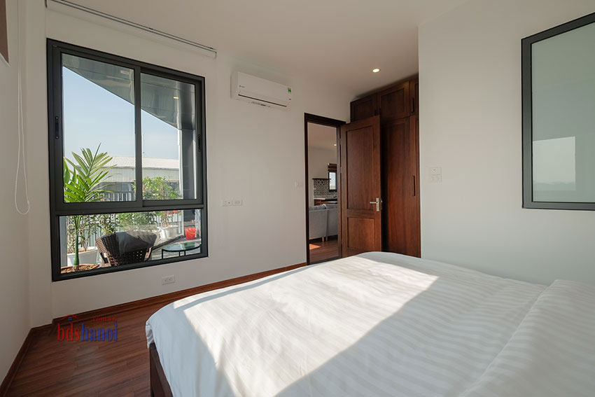 - Tầng 2 đến tầng 7 mỗi tầng là 1 căn hộ dịch vụ 2 phòng ngủ, 1 phòng khách và bếp mở, có ban công, tầng cao view hồ, tất cả đều được trang bị đầy đủ đồ không thiếu gì, khách chỉ việc xách valy vào ở