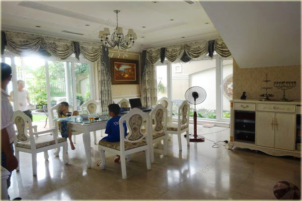 - DT 324m2, MT 9m, hướng TN, xây dựng 130m2 x 3 tầng, gồm 5 phòng ngủ, 5 WC, phòng khách rộng, phòng bếp tiện nghi, phía sau nhà là khoảng sân vườn rộng tiếp giáp dòng sông nhân tạo thơ mộng, view tuyệt đẹp nhìn sang khu Q và sân golf, thư giãn cafe, trò chuyện tổ chức tiệc rất tuyệt vời hoặc có thể làm bể bơi rất hợp lý