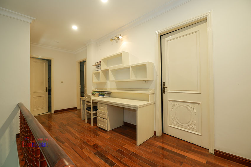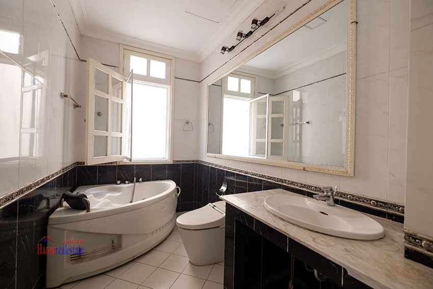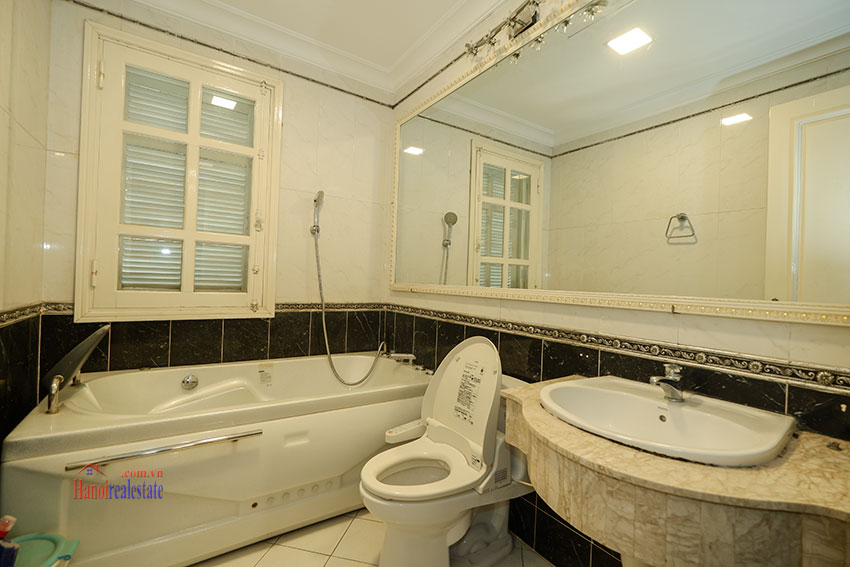 Bán Căn Biệt Thự Ciputra, Căn nhà có diện tích đất 189m, gần trường UNIS, đã đầu tư thiết kế hiện đại, nội thất đẹp, có phòng xông hơi, bồn tắm cao cấp. Tầng 1 có khu vườn với nhiều cây xanh bao quanh, một phòng khách đẹp có 2 mặt nhìn râ vườn, 1 phòng thư viện, phía sau là khu bếp và phòng ăn, Tầng 2 và 3 đã được thiết kế lại thành 4 phòng ngụ rất rộng và thoáng mát, 4 phòng tắm hiện đại với thiết bị nhập khẩu cao cấp, có một phòng xông hơi, ban công rất rộng có thể kê vài bộ bàn cafe.
