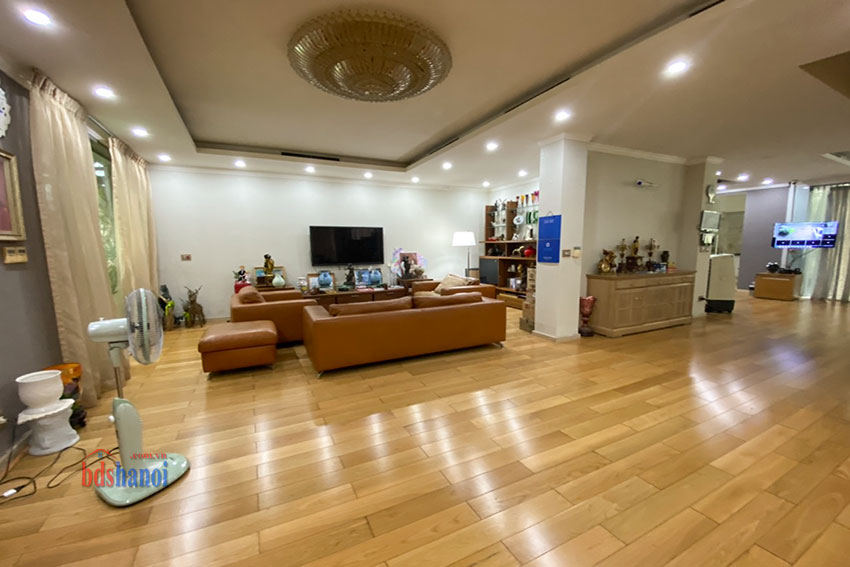 Căn biệt thự có diện tích đất 300m, đã cải tạo rất đẹp, nội thất hiện đại nhập khẩu toàn bộ, trang thiết bị sang trọng, điều hòa âm trần 02 chiều. đã đập thông gara với phòng khách, thay các hệ cửa bằng kính chịu lực...