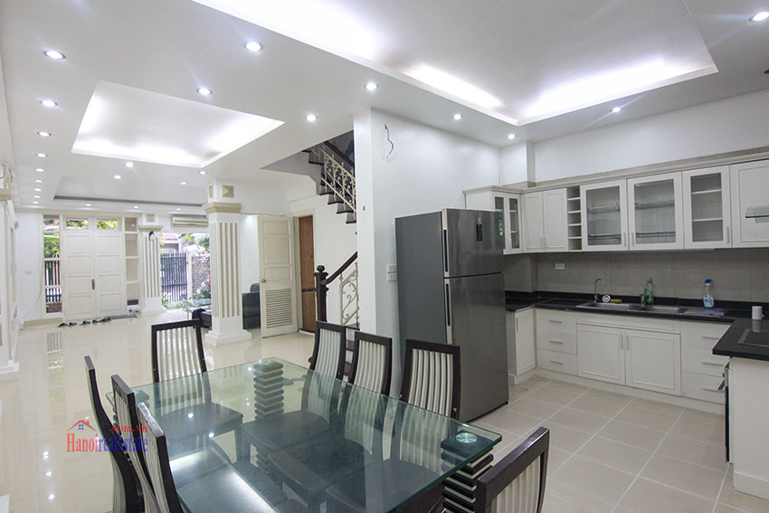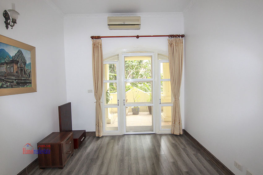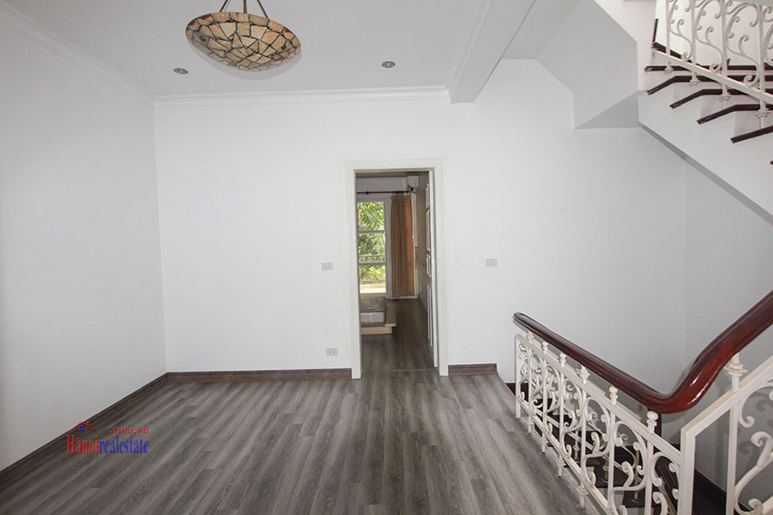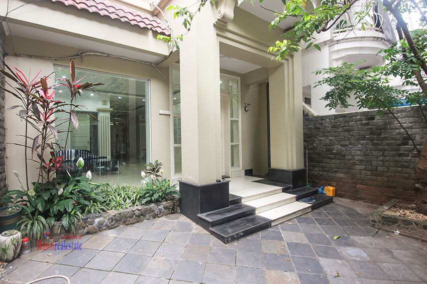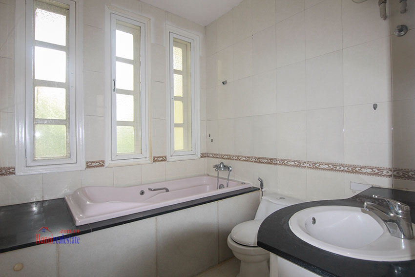 biệt thự bán có diện tích 126m, xây dựng 90m x 3 tầng, thiết kế hiện đại nhiều ánh sáng, có gara oto, sân vườn trước sau, nhà đã sửa lại hoàn thiện đẹp chỉ cần vào ở ngay, nhà bố trí 5 phòng ngủ, 4 vệ sinh, hướng Đông Bắc, đường lớn, phía trước là trường học quốc tế, nội khu an ninh đảm bảo, khu vực dân trí cao