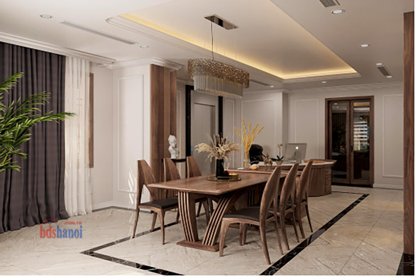 - Thiết kế sang trọng: Phong cách thiết kế Indochina cùng nội thất gỗ óc chó tạo nên một không gian sống hoàn hảo về cả thẩm mỹ và công năng.