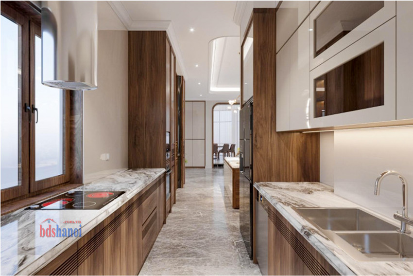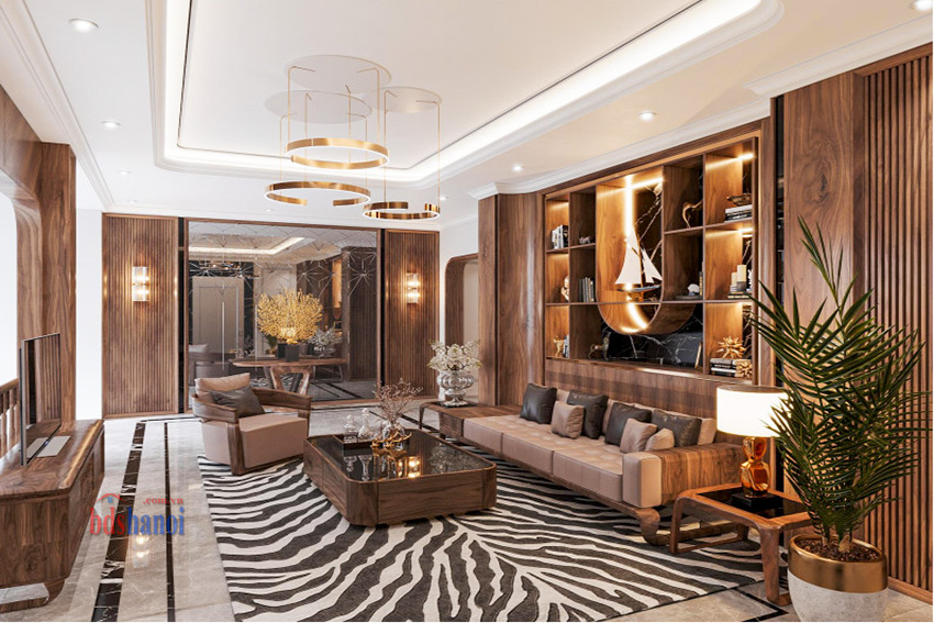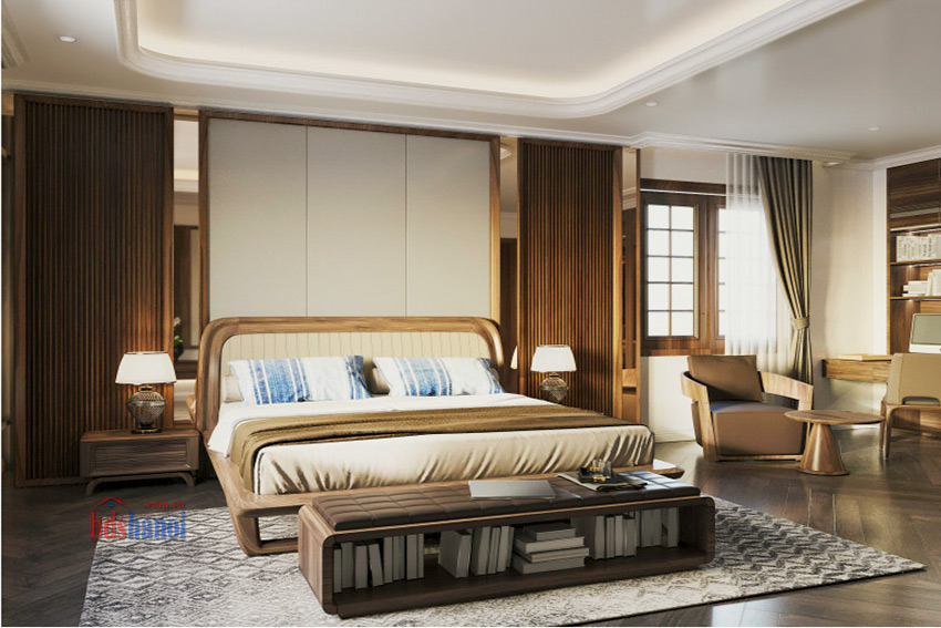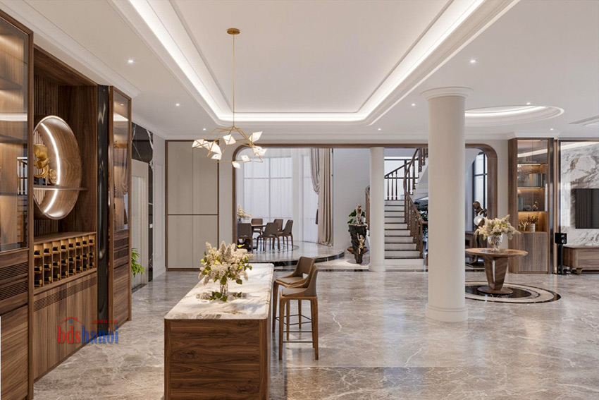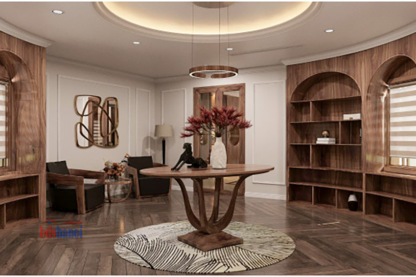 - Nội thất gỗ óc chó: Tất cả nội thất trong biệt thự đều được chế tác từ gỗ óc chó, không chỉ bền đẹp mà còn mang đến vẻ sang trọng và ấm cúng cho ngôi nhà.