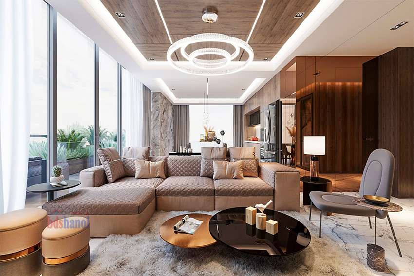 - Tối ưu không gian và tầm nhìn: Với chiều cao trần lên tới 3.6m và hệ cửa kính panorama chạm sàn, mọi không gian trong căn hộ đều ngập tràn ánh sáng tự nhiên và sở hữu tầm nhìn đắt giá ra sông Hồng hoặc sân golf.